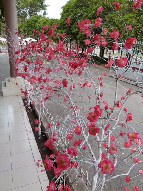 | This is THE man, Mr Ngon, who painstakingly stuck all the flowers onto the branches, one at a time, and who is responsible for the lovely Christmas and now Tet decorations. |